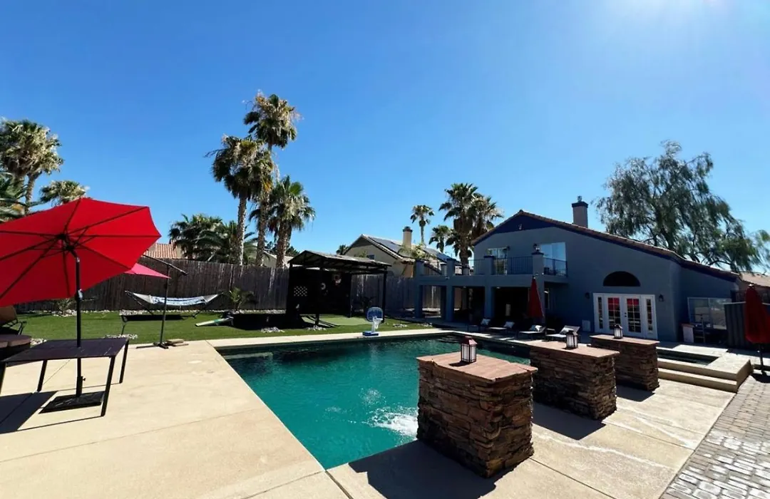 Situated about 10 minutes' drive from the Carroll Shelby Museum, Bluewaterfalls 5Bedrooms 8Beds 10Mins From The Strip Las Vegas villa includes a private pool, as well as a Jacuzzi to relax in. Boasting access to a patio, this Las Vegas villa invites guests to visit the Massive Sunset County Park, located 3.8 km away.